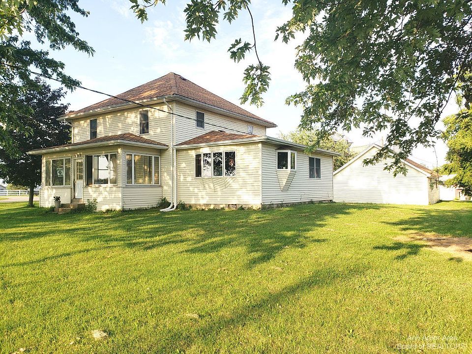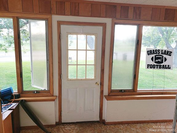 Presented By: Proper Property Services. Here is your opportunity to put some sweat equity into a solid early 1900's Farmhouse! Plenty of room to accommodate family & guests, with 4 bedrooms (possible 5th) and 3 full bathrooms, with a 1st floor primary suite. 1st floor Laundry has it's own entry off the back deck, and a 2nd floor laundry is located on the 2nd floor. You'll love all of the natural light throughout the home, including two very large garden windows in the spacious living room. The enclosed front porch has a golf course view, and the Greenwood Acres campground is your neighbor on this quiet lane surrounded by nature. Detached garage has great storage and workshop space. Finished basement has a separate storage room and a mechanicals area (new furnace in '20), plenty of space for a rec room! There is a third story attic space to the home with it's own stairwell, there is no lack of storage with this home. Grass Lake Schools & Bus Route! Barns & farm buildings are NOT included with the property, and driveway belongs to neighboring parcel. Apple tree, walnut tree, and firepit are ready for your outdoor enjoyment. Home does need cosmetic TLC, so bring your home improvement visions!