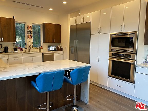 Just Reduced $249k! Seller motivated! Two story Modern newer construction home in Franklin Hills area on cul de sac street! Entertain with this open floor plan highlighting soaring 10 ft ceilings. Spacious kitchen with custom sleek cabinetry, calcatta quartz countertops and top of the line stainless steel appliances. Formal living room with sliding doors to balcony adding abundance of natural light and enjoy city views. Beautiful hardwood flooring throughout, custom electric black out shades on first floor level plus en suite guest bedroom. Downstairs level Master suite with modern soaking tub, separate walk-in shower and dual vanity sinks. Second spacious en suite guest bedroom with large walk closet plus sleek standing shower. Access to back yard from lower level to gated back yard with space to add pool. Come view this Move-In Ready Home! Location offers highly desirable school district plus nearby Griffith Park & Observatory, LA Zoo & Greek Theater, dining options in Los Feliz