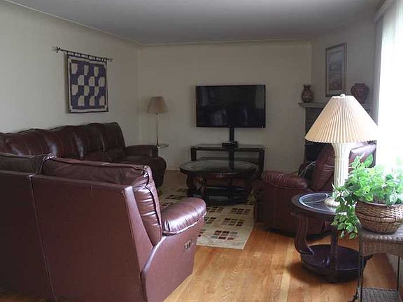 4 bedrm 3 bath Brick & Stone Ranch with Privacy & a tranquil treed view from all 3 decks! Master & Den have elevated decks. Master & lower baths have a shower. Gleaming wood floors & fireplaces make it even better! 2 car Garage & a shed make room for everything. Big Laundry Area, a Family room with a wood burning fireplace, a double closet bedroom &a full bath make up the lower level- Kitchen Renovation Facelift has made it even better!