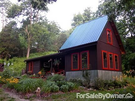 Beautiful, Eco-friendly Cabin for Sale! 1-2 Bedrooms, 1 Bath, Hardwood Floors, Tile in Bath and Kitchen. Pine Ceilings, Ceiling fans throughout, 400 SF basement, 2 outdoor storage buildings. Wonderful Porch to enjoy extensive perennials gardens, wildlife and creek view. Mature landscaping and shade trees. Jotul Woodstove heat, Composting Toilet, Water Catchment System w/filtration system, Municipal Electricity with bill averaging $30-60/month. Poplar painted siding, windows are all double hung and double pane. Concrete dry-weather bridge over 20' creek. The Cabin is located in Washington County, KY off of 555, 1 hour 20 min. from Louisville and 1 hour from Lexington.Property is shown by Appointment Only. Additional property info: http://www.forsalebyowner.com/listing/1-bed-Log-Cabin-Home-for-sale-by-owner-2315-Mayes-Creek-Rd-40069/23981648?provider_id=28079