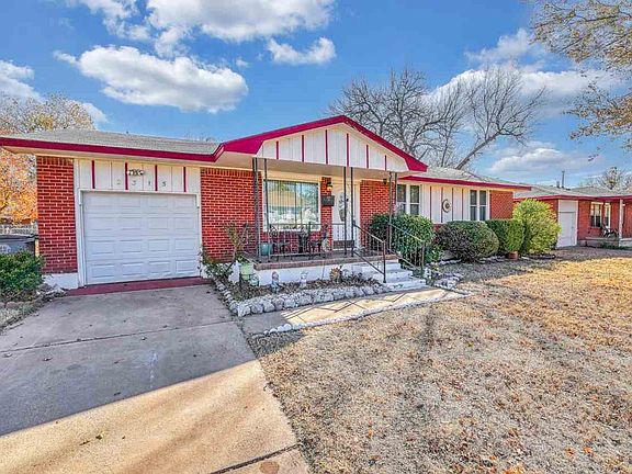 Wonderful, cared and well kept updated home. Covered front porch. Has tile floors, newer carpet in living & bedrooms, LVP floors in kitchen & dining. Great kitchen, granite countertops, gas stove. Large main bedroom with sitting area. Updated hall bath, walk-in shower. Nice garage. Dining area. Double French doors. Large covered patio, deck, fenced in yard, storage shed. Shows very, very nice. Home to be sold in As Is condition. Call 580-248-8800 for showings, text 580-581-7870 for more details.