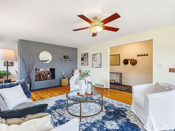 Classic Mid-Century home in sought after Olympic Manor! From the beautifully landscaped yard to the double-sided fireplace and 3 bedrooms on the main level, this house offers plenty of space to call home. Original slate & oak hardwood floors, spacious living room, formal dining, updated kitchen w/SS appliances, granite countertops & informal eating space w/slider to a large deck and huge, fully fenced backyard with raised garden beds. Tons of potential in the lower level to customize to your needs w/oversized family room, fireplace, built-ins, bedroom, full bath & even more space for projects, hobbies & storage. New Heat pump. 2 car attached garage. Close to shopping, restaurants, schools, & parks in Loyal Heights, Crown Hill, & Ballard.