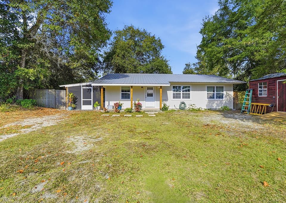 This beautifully updated 3-bedroom, 1.5-bath home blends coastal charm with modern upgrades, making it the perfect starter home, retirement spot, or weekend getaway near the Gulf. Inside, you'll find a bright, open kitchen featuring brand-new cabinets, butcher block countertops, stainless steel appliances, and durable LVP flooring throughout. Thoughtful details bring this home to life – from wainscoting ceilings and shiplap accent walls to custom tile showers that add a touch of luxury. Both bathrooms have been stylishly refreshed with tasteful finishes and coastal character. Step outside to enjoy the large screened-in side porch with sliding glass doors, ideal for sipping your morning coffee or relaxing with a cold drink in the evening. Got a boat or fishing gear? No problem! There's plenty of room to park and a handy storage shed out back for all your coastal essentials. Cute and cozy doesn't even begin to describe this one, it's a must-see for anyone looking to enjoy the laid-back lifestyle of Florida's Forgotten Coast!