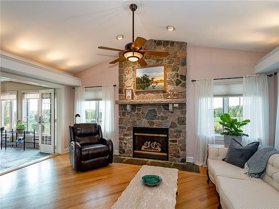 Magnificent ranch home located in a serene 1.4 acres. This home was built to be truly wheelchair accessible throughout the first floor. Accessible features include: hardwood and non-slip floors and entrys, wide hallways and doorways, no step entry and shower, lower counters and so much more! Wide open Great Room with gas fireplace and built-in shelves. Crown molding featured throughout. 4-season room with a wall of windows overlooking the patio and back yard. The kitchen features plenty of cabinets, Corian counters, stainless steel appliances and a large walk-in pantry. The house includes an automatic and permanent generator and a chairlift to the basement. Roof replaced in 2017, newer garage door, central air and heat handler replaced in 2019. Beautifully landscaped with perennials, flowering trees, brick pavers, patio, flag pole and a fountain. Huge 14-course basement with kitchenette, half bath and a cedar closet. Patio, back yard and 4-season rm allow for some amazing sunset views. So many bonus features! A must see!