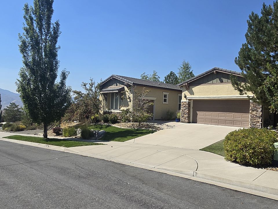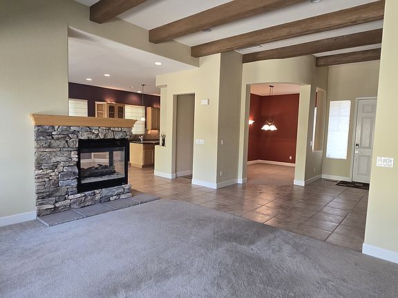 One-story Somersett home offers spacious living in adjacent family and living rooms separated by a peninsula gas fireplace. 3 bedrooms, 2 baths, formal dining room and office nook with one 2-car garage. Option for rental of additional separate 1-car garage. Wake up to Sierra views in the primary bedroom which has a large walk-in closet and ensuite bath with a double-sink vanity, water closet, large shower and separate soaker tub. The eastern wing of the home has an office nook, two bedrooms that share a hall bath and linen storage. Western-facing fenced backyard features large paver patio, mature landscaping and a pergola. Window coverings and built-in entertainment center included.