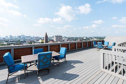 Once the Federal Land Bank of Baltimore circa 1923, now a 63 unit luxury residential community, conveniently located in the historic neighborhood of Charles Village near Mount Vernon and Inner Harbor. Savor vibrant social scenes that Charles Street has to offer. Enjoy breathtaking panoramic views of the Baltimore skyline from our rooftop deck, at a soaring 145 feet. Relax, read a book, socialize with your friends, sunbathe, or BBQ your favorite meal on our deck. Our state-of-the-art fitness center is located on the penthouse level. Complimented by premium wooden flooring with extra padding, four flat-screen televisions, and a designer bathroom will motivate anyone who enters the Gym. Historic boardroom has been transformed into a community room with a media center, billiards table, and table tennis to enjoy with your friends. The bluestone and glass patio is a gorgeous place to picnic or BBQ with its cozy fire pit, comfortable picnic furniture, and serene waterfall. City View Lofts offers cathedral ceilings and large 9-foot windows that let sunshine in all day. Designer Brazilian cherry and oak kitchen cabinets and absolute black granite countertop, as well as sophisticated kitchen islands with pendant light, add to their beauty. Bathrooms are dressed in imperial black granite, white marble, and glass vanities with waterfall faucets. Convenient resident-controlled thermostat and secure intercom are found in every unit. Have peace of mind by parking in our fenced-in, secure parking lot with remote access. True two-story lofts with open design and a wrought iron staircase that will take you up to your master bedroom. The community is cable-ready. We also offer indoor bicycle storage. We are a pet-friendly community with a dog park. There is so much more to see and enjoy at City View Lofts. Schedule your visit today!