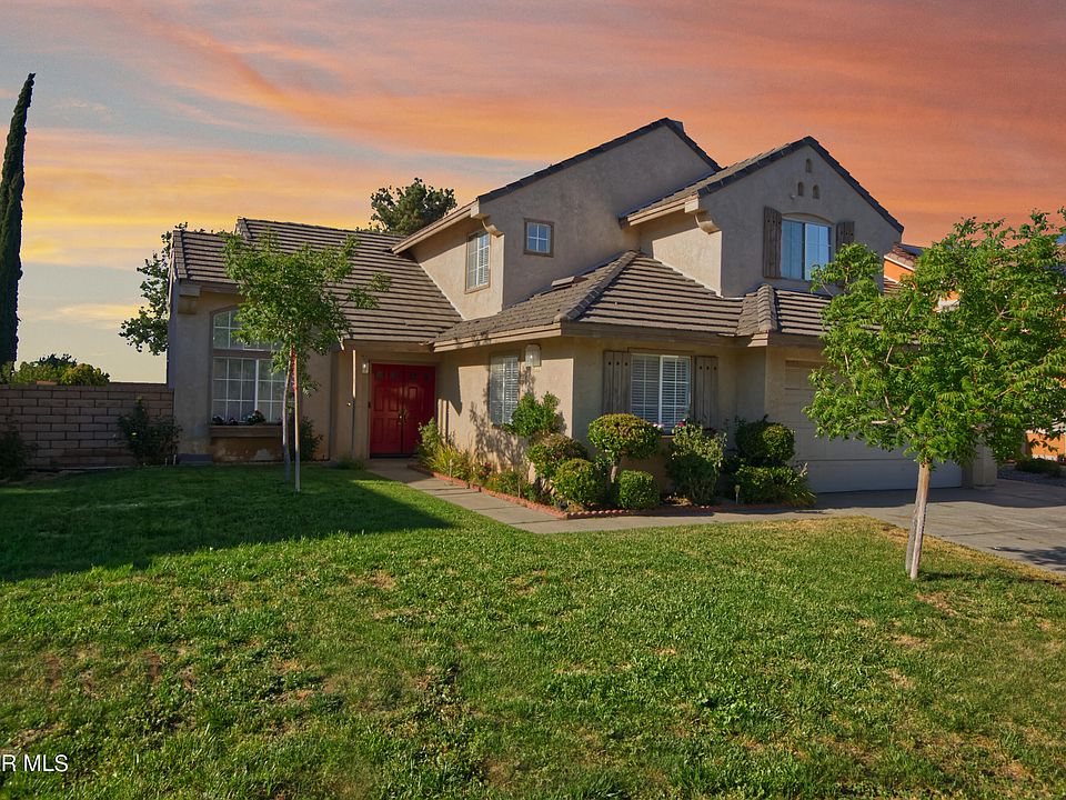 Welcome to this spectacular 5 + 3 turnkey Pool Home, located in the desirable Rancho Vista community of West Palmdale close to Marie Kerr Park and the amphitheater. On a cul-de-sac, with South facing Red Double Door entry, offering a great modern farmhouse feel, with white and neutral grey tones including durable high end tile flooring downstairs will appeal to today's most discerning buyers. Well cared for and beautifully updated and remodeled with careful design and quality materials. This spacious home offers plenty of natural light and an open feel with with its stunning architecture, smooth textured vaulted ceilings and abundant windows. This charming home has so much to offer with 2453 sq ft of living space, including 1 downstairs Nanny or housekeeper bedroom off the laundry room and an additional downstairs bonus room that can easily be an additional bedroom/office and a bathroom with shower downstairs. Upstairs you will find the additional bedrooms, a full bathroom and the master suite offering a cozy sitting area with fireplace, a spacious private bathroom with large dual entry walk-in closet, dual sinks with granite counters, large soaking tub, separate shower and commode closet. Some wonderful features in this home includes a newer 5 ton HVAC system, dual pane windows, 2 fireplaces, ceiling fans throughout, durable tile flooring, tall ceilings, indoor laundry room with sink, and direct access to the 2 car garage. The chef inspired kitchen boasts beautiful quartz counters and back-splash, classic farmhouse sink, large pantry, newer stainless steel appliances, and gas cooktop with versatile griddle. And the breakfast nook offers a great view of the pool. From the dining room or family room step out into your own personal oasis with covered patio and refreshing pool perfect for those hot desert days and nights. Enjoy warm summer evenings and great summer sunsets while entertaining friends and family and maybe listen in on one of the local concerts nearby. Live in a bustling community that boasts a fabulous shopping center with movie theater, plenty of restaurants, and just 2 blocks from Best of The West Softball Complex that hosts tournaments year round, the Marie Kerr Community Park, & the The Palmdale Amphitheater that is a wonderful place for locals and visitors to get together with family and friends to enjoy live music under the stars on Palmdale's spectacular summer evenings. And just a short drive away is the Ranch Vista Golf Club featuring a Ted Robinson designed 18-hole golf course offering a lush oasis perfectly complementing the surrounding desert landscape while the Clubhouse features a comfortable retreat for a quiet family dinner or celebrating special occasions. New A/C unit in July 2022. All the work has been done for you. This turnkey home is read for you to move right in! A great place to call home