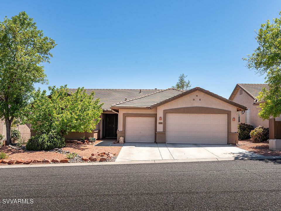 Welcome to this immaculate 3-bedroom, 2-bathroom home, perfectly positioned to capture breathtaking views of Mingus Mountain from the expansive back covered patio. With high ceilings throughout, the extended dining area, filled with natural light from large windows, provides a welcoming space for gatherings. Unwind in the living room, where a fireplace wrapped in Italian tile and a handmade ponderosa pine mantel create a cozy ambiance. The well-appointed kitchen features granite countertops, ample cabinet space, ideal for culinary adventures. Retreat to the master bedroom, boasting a walk-in closet and an ensuite with double sinks, separate tub, and shower. Paid-off solar panels for energy efficiency. Don't miss out on this beautiful home offering a blend of elegance and comfort. This property boasts numerous improvements, including new window coverings and updated flooring in the living and master bedrooms.