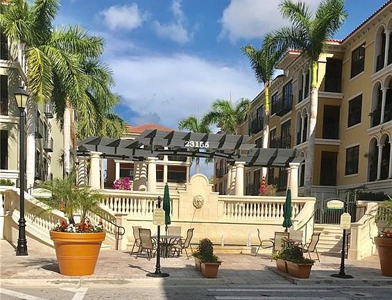 Rarely Available Large J1 Floor Plan upstairs from Victoria Secrets with lovely view of shoppers and streetscape. This upgraded apt features includ wood flooring in Den and Both Bedrooms with large tile in main area. Great room split bedroom floor plan with both being private suites with a gust bath in hallway. Enjoy balconies and large lanai with lots of night life and over 22 restaurants to choose from. Movie theater close by, large stores such as Target and Best Buy plus so much shopping in stores like Dillards, Chico's and even an Apple store on site. What ever your taste and shopping desires Coconut Point has it all. This apt is located across a small street to the Community Pool with Spa Clubroom and Exercise Center. Luxury living in a fabulous location only minutes to Beach or Airport. The finishes on this apartment are excellent. Fully equipped kitchen with stainless appliances and granite counters. Upgraded water heater and recently replaced Train Air Conditioner. Custom painting and Window Treatments included but furnishings are negotiable. Enjoy watching the sun set from your western exposure. Second Floor over stores with a secure elevator and lobby. Quality!