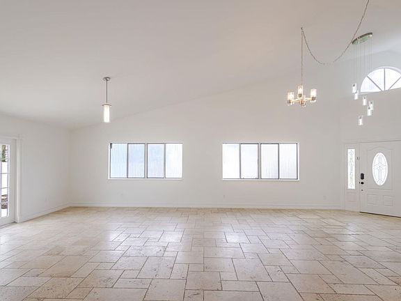 Well-kept West Boca home featuring 3 bedrooms and 2 bathrooms on a fully fenced corner lot with a spacious backyard. Recent improvements include fresh neutral paint, smooth ceilings (no popcorn), and updated lighting fixtures throughout the home, garage, and exterior. Travertine marble flooring runs through the living areas, highlighted by vaulted ceilings and abundant natural light. The updated kitchen offers wood cabinetry, granite counters, and stainless steel appliances. The primary suite includes two walk-in closets and a remodeled bath with an oversized walk-in shower. Additional features include a front-load washer/dryer, upgraded garage lighting, and thoughtful improvements that create a bright, welcoming feel. This home is move-in ready, modernized, and turnkey.