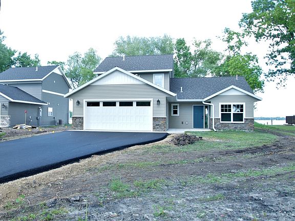 Welcome to this Custom-Built Home on Eagle Lake! You're going to Love the Gradual Slope of the Yard Leading to the Shoreline! Spacious Open Floor Plan with Vaulted Ceilings & Cozy Fireplace in the Living Area. Custom Cabinetry Thru-out Home. Large Center Island, Tile Backsplash & Corner Pantry in Kitchen. Granite Counters. Stainless Steel Appliances. Solid Core 3 Panel Interior Doors. LVP Flooring (Waterproof!) on Entire Main Level. Primary Bedroom on Main Level with Private Bath. Free-Standing Tub, Walk-in Tile Shower and Walk-in Closet. Upper-Level Bath has Large Soaking Tub with Tile Surround. Lovely Covered Front Porch Area. In-floor Heat with Forced Air Backup Furnace. Tankless Water Heater. In-floor Heated Garage with Floor Drain. Gutters to be Installed on Home with Leaf Covers. Irrigation System. Situated on a Quiet Cul-de-sac with Easy Access to an Extensive Trail System. Conveniently located just minutes from Willmar and Spicer.