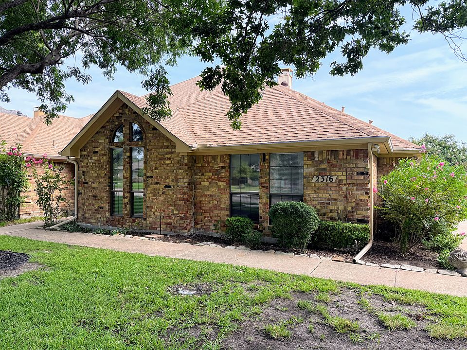 Charming 1-Story Duplex with Updates and Perfect Location Close to Bob Woodruff Park in Highly Sought After neighborhood of Plano with top rated Plano ISD! This home feels refreshing and inviting. This lovely one-story duplex has three bedrooms and two bathrooms. It has modern updates, plenty of space, and is located on a quiet cul-de-sac. You will have easy living with a two-car garage at the back and newly installed neutral-colored flooring in the hallway, bedrooms, and the second bathroom, which looks amazing! The big living room has a warm gas fireplace with a mantel and a brick base, storage built-ins, a wet bar, and a stylish coffered ceiling, making it a great place to relax or host friends. There is also a formal dining room that looks elegant. The bright kitchen has granite countertops, lights under the cabinets, stainless steel appliances, and a sunny breakfast nook with comfy seating that looks out onto the patio, backyard, and flower beds, all surrounded by a stained cedar fence for privacy. The big main bedroom has high ceilings and its own private bathroom with a large walk-in shower, two closets, and lots of drawers and cabinets for all your things. You'll love being so close to Bob Woodruff Park and the lake, which are great spots for walking, biking, playing, and enjoying nature with ducks and turtles around. This is a unique chance to lease an amazing home near a fantastic park! The home also comes with a sprinkler system, the kitchen refrigerator, curtains, and shower curtains! This is a great chance to rent a home in Plano, and it is really close to lots of fun things to do with friends and family. Come check out this home today!