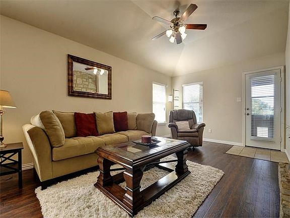 Perfect for entertaining, this beautiful Rancho Alto home features an open floor plan, new hardwood floors, a stone fireplace, large utility room and vaulted ceilings. A huge custom cedar deck with pergola overlooks a .20 acre lot that backs to green space with no neighbors behind.