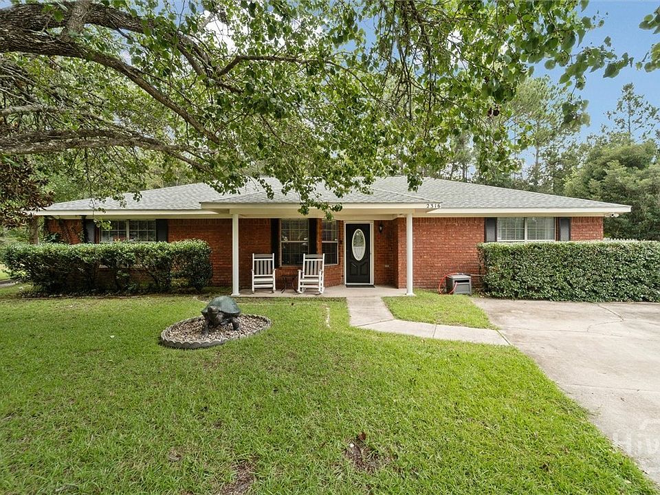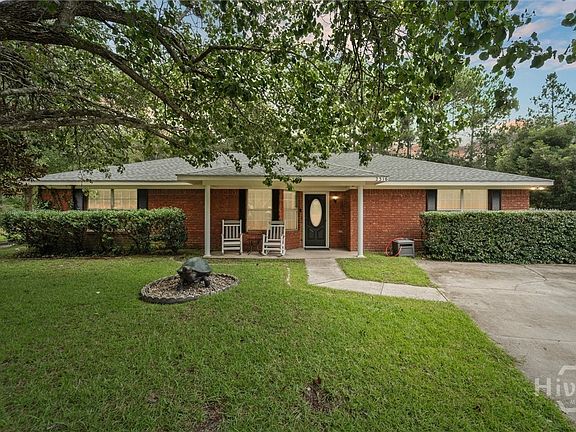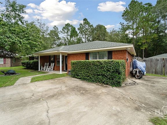 Discover this beautifully maintained, move-in ready brick home offering 3 spacious bedrooms and 2 full baths in a desirable cul-de-sac location. The inviting rocking chair front porch sets the tone, leading into a bright great room with vaulted ceiling, wood-burning fireplace, and wood laminate floors. The split-bedroom floor plan ensures privacy, while the large eat-in kitchen shines with stainless steel appliances, a coffee bar, and plenty of natural light. Retreat to the generous primary suite with walk-in closet and private bath featuring dual sinks. A sun-filled Florida room overlooks the private, fenced backyard with serene wooded views, above-ground pool, and two storage sheds providing ample space for tools, equipment, or hobbies. . Perfect for entertaining or relaxing, this home combines comfort and convenience just minutes from Fort Stewart, shopping, and dining. Don’t miss your chance—schedule a showing today!