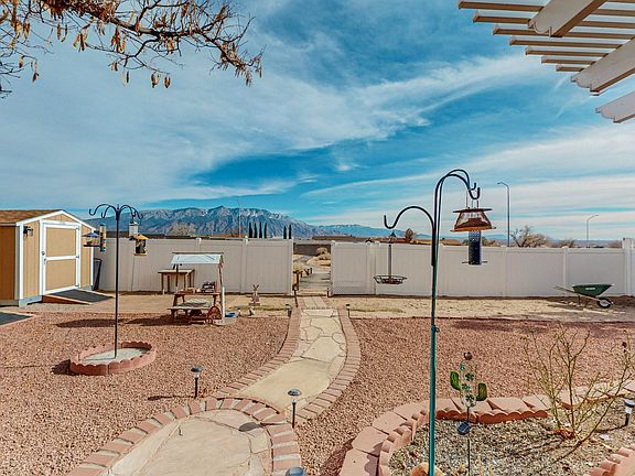Looking for a home that has tons of flexibility, is move in ready and all the big projects have been done? Come see this well-maintained home with a backyard sanctuary featuring amazing Sandia views, picturesque sunrises and sunsets. There is a kitchenette and 2nd washer/dryer hook-up with a private entrance which could be used to make this a multi-gen home or used as a rental. Work from home or home-school? This house has the space for it all. It even has an outdoor pet enclosure! All appliances convey as well as two storage sheds. Stainless LG refrigerator and gas stove purchased 2019. The garage is insulated, oversized and finished.