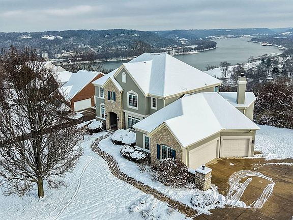 Experience elevated luxury living with Spectacular year round RIVER VIEWS from nearly every room in this custom home built by Jobe builders with 5,000 square feet of living space and plenty of privacy. Enjoy Panoramic views from all three floors of this home. It was designed as an entertainers delight or to just enjoy everyday living with unmatched views. The layout is ultra flexible with 4 bedrooms 4.5 baths and updated chef's kitchen and gorgeous oversized island! Exterior of the home has been freshly painted and new window drains installed. The home features 4 fireplaces, casement windows, Expansive multi-level outdoor entertaining spaces with two firepit areas. The primary bedroom not only offers gorgeous views from your private balcony a wet bar area and fireplace. All bedrooms offer walk-in closets and en-suite baths. Finished basement with kitchenette, large entertaining area, beautiful stone fireplace and walkout. Crown molding finishes off every room in the house. You will also find a 3 car garage and plenty of storage space. Don't miss the opportunity to view this beautiful home and Enjoy the New Year in your gorgeous new home!