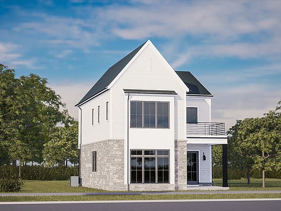 The Flint: A covered front porch leads to an open living room, dining space, and kitchen. The kitchen boasts a large island, and leads directly to the back patio. From the 2-car attached garage there is a mud room equipped with lockers and coat closet, as well as an adjacent kitchen pantry with built-in shelving and powder room. Access to the second floor can be found near the front foyer space. The lavish owner's suite is located on the second floor and includes a large walk-in closet, walk-out balcony, and bathroom with a double vanity and large shower. Upstairs, there is one additional bedroom with a full bathroom, a laundry room, and unfinished storage space. Additional structural options include; living room fireplace, and a third bedroom option.