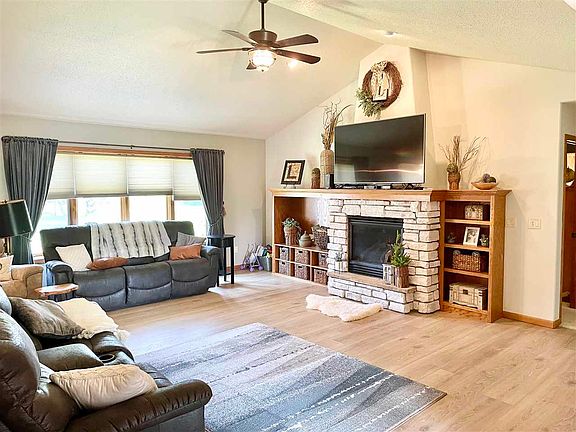 Be impressed when you enter this one level, Tramp built home in sought after neighborhood! The main level boasts a spacious living room with new flooring, a gorgeous stone fireplace with built-ins, and beautiful windows with backyard viewing pleasure! Open to the living room is the kitchen which features a breakfast bar, large pantry, new hardware, flooring, and fixtures, which also has access to the 3-seasons room and backyard. You'll also find main floor laundry, and two bedrooms, one of which is the master suite featuring a master bath with jetted tub, double vanity, and walk-in closet. In the lower level you'll love the family room space, updated 3/4 bath, a third bedroom, potential for a fourth bedroom, and a great storage area. This home has been meticulously maintained and quality built! The owners have simply LOVED this neighborhood, located just across the street from Hillcrest golf course. Trust me, you'll want to see this home and make it yours!