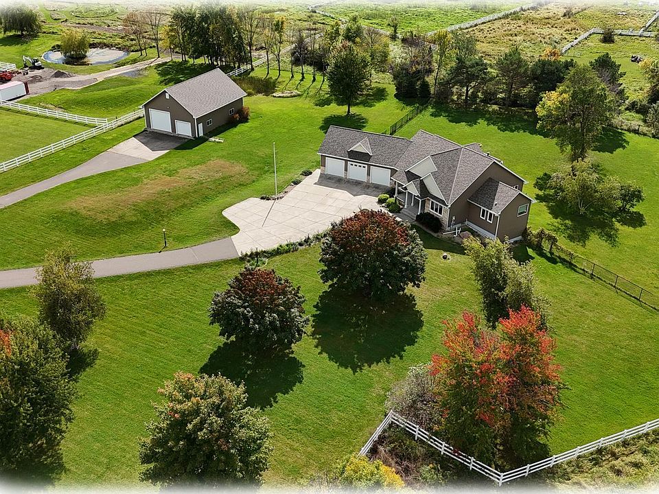 This stately Corcoran walkout rambler combines serene country ambiance with the convenience of city living - just minutes from Maple Grove, Hanover, and Rogers. Situated on 4.4 acres, the property is fully fenced, including a low-maintenance front perimeter rail fence and a secure backyard black chain link fence. Wildlife sightings of pheasants, ducks, turkeys, and even deer can often be enjoyed right outside your door. Inside, the open and thoughtfully designed floor plan highlights expansive views and abundant natural light. With four generously sized bedrooms plus flex room, the home accommodates a variety of lifestyles. The main-floor primary suite features a spacious bathroom with heated floors and a walk-in closet, while main-level laundry ensures the ease of one-level living. Two gas fireplaces add warmth and character, and a large, clean storage room provides plenty of space for all your extras. The heated three-car garage includes epoxied floors and dual service exits, while the impressive 36' x 50' outbuilding is fully equipped to accommodate recreational vehicles/shop/storage.