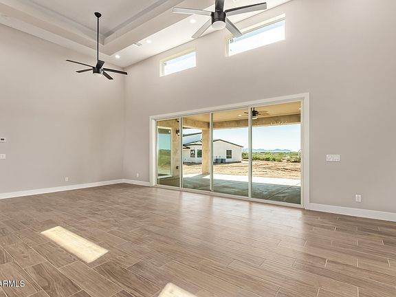 Your dream home is finally here! This brand-new 2025-built residence in Wittmann, AZ welcomes you w/a 3-car garage and a charming front porch. Discover a captivating open floor plan that perfectly blends comfort & style. Enjoy wood-look tile flooring, soaring ceilings, & wide sliding glass doors that open to the back patio, creating a seamless indoor-outdoor living experience. Gourmet kitchen is a chef's delight, featuring SS appliances, abundant cabinetry w/crown moulding, quartz counters & backsplash, & a large prep island w/a breakfast bar. Romantic primary retreat boasts plush carpet, direct outdoor access, an ensuite w/a floor-to-ceiling tiled shower, & a walk-in closet. This gem also offers a 2nd main bedroom w/its own bathroom & a Jack & Jill bathroom for added convenience. Relax under the covered patio while appreciating breathtaking mountain silhouettes. Hurry! This exceptional home won't last long!