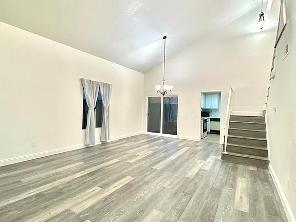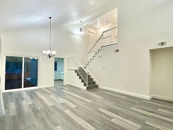 THE PROPERTY: This recently renovated property has 3 bedrooms and 2 bathrooms. Spacious master bedroom has a high ceiling, a spacious walk-in closet, a remodeled bathroom, and a double sink counter. The living room is huge with a vaulted high ceiling. The whole unit is upgraded with new hardwood floors, new paint, new kitchen, new toilets, and new washer/dryer. The 3-car garage is shared - you will have 2 car spots inside the garage and 2 spots on the driveway. There are shared walls. The property is located on the north side of 60 with a lot less traffic, the other side of Moreno Valley Mall. It is in a clean and beautiful hillside neighborhood. Very close to markets, restaurants, and amenities. - Near Ironwood Ave & Pigeon Pass Rd, Zip code: 92557