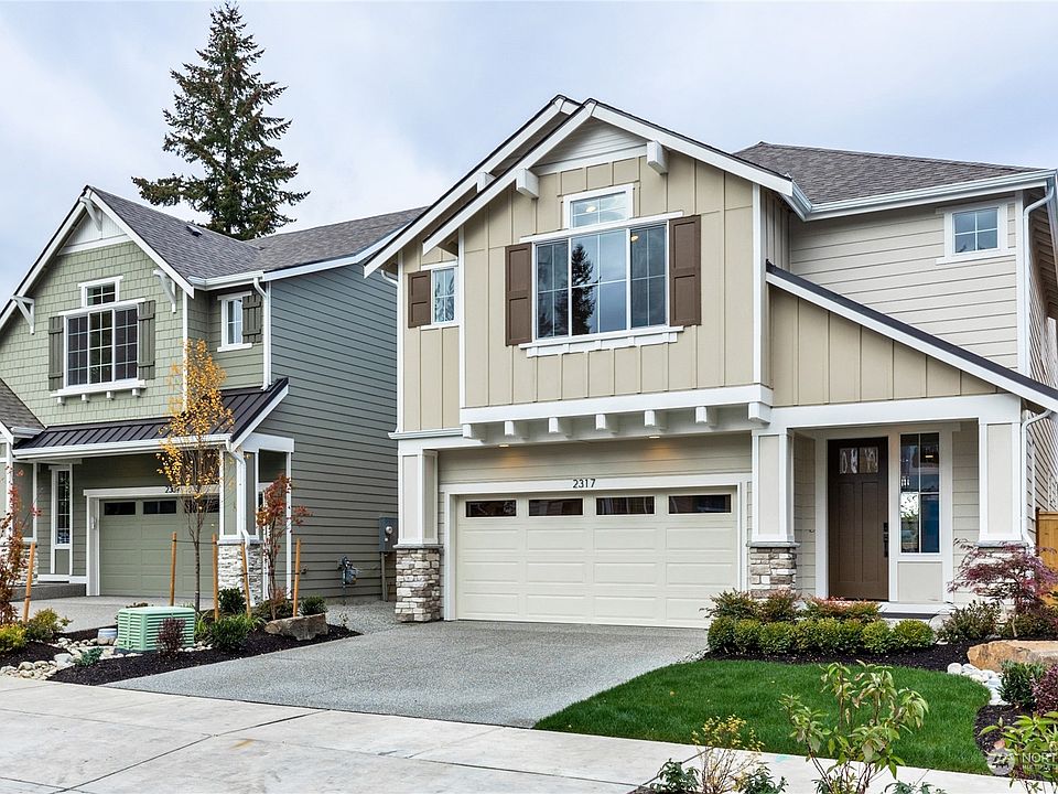 Enclave in Bothell New 2 story home by RM Homes! This upscale home includes a high-end appliance pkg, AC, rich trim package and hard surface flooring. Enjoy great room living adjacent to a covered outdoor living area with double-sided indoor/outdoor fireplace. Chef's kitchen, quartz counters, DBL ovens, and wine/beverage fridge. Main floor bedroom with adjacent 3/4 bath, perfect for a guest suite or home office. Huge primary bedroom suite has two walk-in closets with closet systems. The tiled five-piece primary bath has dual sink vanity, soaking tub, walk-in shower and heated floors. Huge fenced yard, fully landscaped with irrigation. One mile to downtown Bothell with easy access to 405. Northshore Schools.
