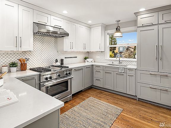 Stunningly renovated Madison Park home with open floor plan, designer finishes & detached ADU/studio over the oversized 1-car garage. Exquisite 2015 remodel includes all new kitchen, spacious master suite with white marble bathroom, vaulted ceilings & tons of natural light. 2 bedrooms on the main level with gorgeous hardwood floors throughout. Large, sunny back deck & yard. Lower level rec-room, bonus room & wet-bar. ADU with vaulted ceilings, kitchenette, bathroom & washer/dryer hookup.