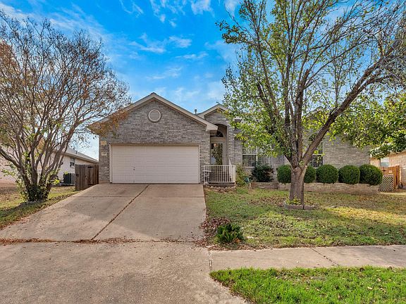 Welcome to 2317 Chestnut Path—an inviting 4-bedroom, 2-bath home with an open, flowing floor plan designed for comfort and style. Step inside to a Texas-size living room that feels exceptionally spacious for homes in this range, highlighted by vaulted ceilings, a designer art niche, and a beautiful bay window that brings in natural light. The open-concept kitchen, dining, and living areas create an easy layout for entertaining or everyday living. Tile and laminate flooring throughout adds to the home’s modern appeal. The private primary suite offers its own vaulted ceiling, a double vanity, a separate tub and shower, a relaxing rain shower feature, and a walk-in closet for ample storage. Outside, enjoy a large yard with mature trees and an impressive view of the Round Rock skyline from the hilltop. A playhouse that doubles as a storage building provides additional space for the kids to play or for tools, lawn equipment, or hobbies. And with no HOA, you’ll have the flexibility you’ve been looking for. Conveniently located near major roadways, shopping, dining, and employment centers, this home perfectly blends comfort, convenience, and Texas charm. Don’t miss this great opportunity in Round Rock!