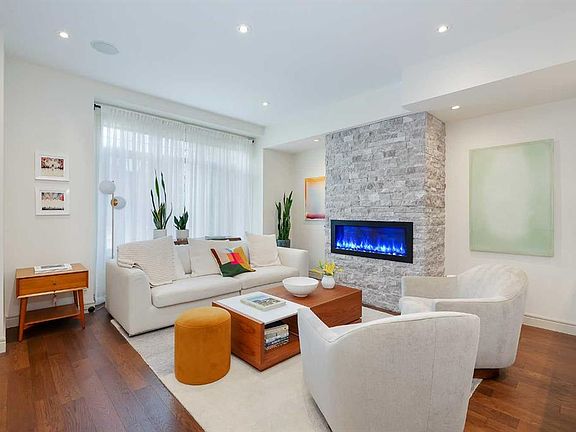 New hardwood flooringHigh ceilingsFloor to ceiling fireplaceRefreshed kitchenNew counter topsFreshly painted cabinetsNew backsplash