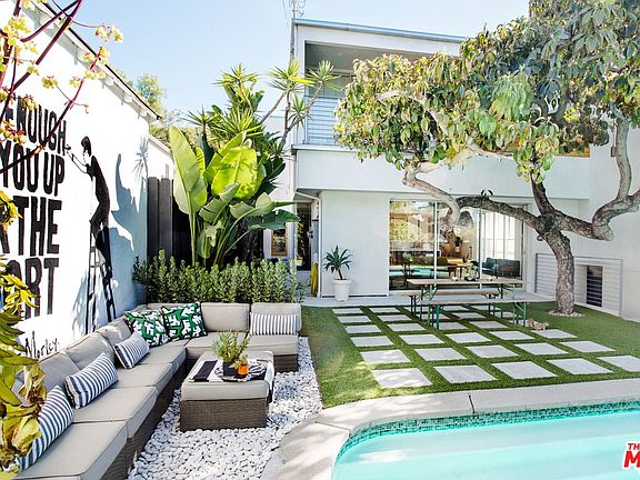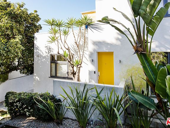 Jacobschang Architecture. An emotional architectural environment brilliantly positioned to allow soft light into all areas. Modern social home; Open concept kitchen, dining, living, playing, where Fleetwood doors sweep the line between indoors and out. Art-inspired backyard hugged by a beloved avocado tree; entertainment seating, protective landscaping, ARTthenticity, and a large salt water pool. Breezy minimal aesthetics with large hits of color; 4 Bedrooms, 3.5 baths, Media room/Office, Luxurious Master Bath, art gallery sized walls, and entertainment roof decks featuring Downtown skyline Views, and off the luxurious Master suite; outside getaway with fireplace and privacy. A large range of contemporary updates. Newer, fresh and unexpected, the organic rhythm, scale, form and function are masterful. Published in DWELL, Flodeau, etc. The determined design of color and spirit creates a home replete with love and joy. Jacobschang Architecture: Winner AIA 2017 LA Residential Architecture Design Merit Award for the Hedge House.