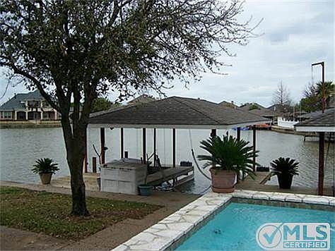 LOCATION! Open water view over a wide section of Water s Edge canal. Oversize boat dock (60 wide) extends the yard for entertaining all of your friends! 2 boat docks & 2 jet ski lifts. Convenient access to lake. Large, low maintenance, salt system swimming pool. Many upgrades enhance floor plan which includes master & mother-in-law suites on ground floor. Guests will love upstairs privacy. Water view from almost every room! Trade possible. Brokered And Advertised By: Century 21 Shirley Hooks, LLC Listing Agent: Reda Kay