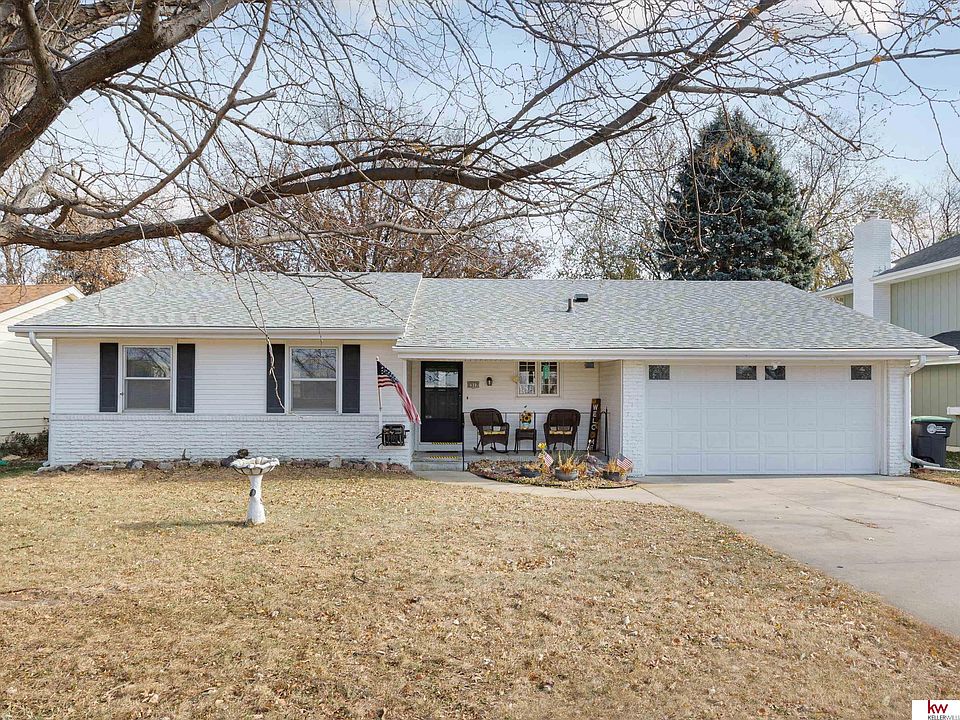 Open House Fri 5p-7p, Sat 12p-2p!! Prepare to be wowed by this adorable ranch with 2 car garage near 132 and West Center Road! Step foot into this home that features beautiful wood beams in the sunken living room with new vinyl flooring and natural wainscoting -1600+ sq ft on main floor! Galley kitchen is waiting for your personal updates too! Main floor laundry with attached half bath. Large primary bedroom has plenty of storage and attached primary suite with full bath. Two other main floor bedrooms are great sized with ample closet space. Large, partially finished basement with half bath is great for a non-conforming bedroom or revamped entertainment space. Plus plenty of storage in the utility room! Backyard boasts a newer6 ft wood privacy fence and has a storage shed. Home is situated right across the street from Montclair Park, near walking path and plenty of Scooter's coffeehouses! Enjoy your hot coffee on your covered porch on those brisk mornings! Schedule your showing today.