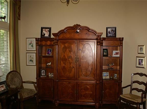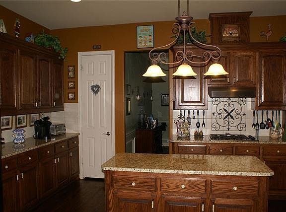 Perfect for entertaining w-handscraped floors from front to back door. Including KT & Bkfst . KT w-granite, SS appliances, big island - all very open to living area. Spa-Pool has covered patio, stone extended patio w-monkey grass, B&B fence, PebbleTec, lots of jets for spa. Iron Balister on stairs & landing. Big game room w-double door to media room. LR, Dining Rm, and 2 story den have custom draperies. 3 car garage is 3 space wide - 8 ft door.