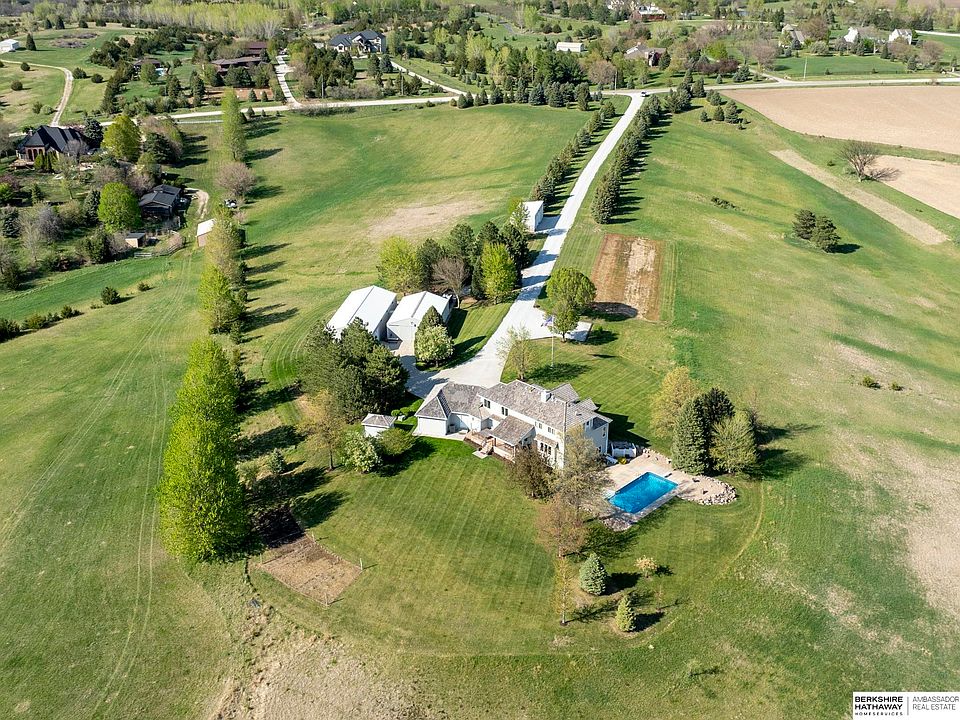 20+ ACRES, NO COVENANTS AND LOW TAXES AND BRING YOUR BUSINESS TO HOME OPPORTUNITY. Panoramic Views! Discover this EXTRAORDINARY estate off Harrison Street in the Gretna School District-a rare find for acreage buyers! Key Features: 4 bedrooms, 4 baths, one bath in the 30x70 party barn! Brand new carpet upstairs. Six figure chef's kitchen with top-of-the-line Viking appliances, perfect for hosting culinary masterpieces that will make your friends envious! 3 outbuildings, including a spacious party barn for gatherings or to use as a VENUE like Soaring Wings Winery in Springfield. In-ground pool with sweeping views of the LOST RAIL Golf Course, just minutes from Hwy 6, blending convenience with rural tranquility. Unbelievable views. This ESTATE offers the ultimate combination of luxury, space, low taxes/bring your business to home. Don't miss this opportunity to own your slice of paradise-schedule your showing today! New buyer has the opportunity to subdivide off parcels per the county.