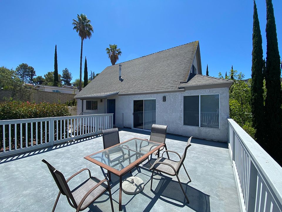 23174 Aster Trail, a spacious 1500+ sq.ft. Calabasas Highlands's 3-bedroom, 2-bathroom quiet cottage home with stunning Tuscanesque views. A large elevated patio deck and garden patio nook make it a creative sanctuary. Situated within the Las Virgenes School District. Appliances include range, dishwasher, refrigerator and washer & dryer. The property offers ample storage, parking for 2 cars and stellar views. There is a studio below that is rented to single professional. Utilities are shared and not individually metered. 1. Tenant pays for utilities for the property on a whole. This includes: Gas, Power, Water, and Trash & Sewer. Water will be provided for the garden on the basis of the gardener's watering schedule cycles necessary to insure plants thrive. 2. Owner will provide gardener and garden supplies for the grounds under the care of the gardener. 3. Tenants shall provide their own renters personal property insurance. 4. Owner will provide home property insurance including fire protection.
