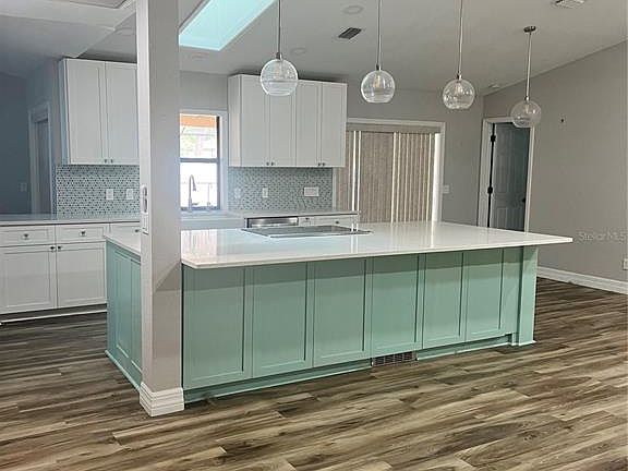 Large swimming poolSleek quartz countertopsModern kitchenHurricane impact windowsPrivate fenced backyard oasisStainless steel appliances