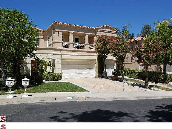 Professional photos coming! Guard Gated Bellagio of Calabasas. 3,436 Square Feet Mediterranean on 10,359 Square Foot lot, New white washed wood plank floors, cathedral ceilings, dramatic open floor plan, Custom Swimmer's lap pool, prime end of private cul de sac location, BEST FLOOR PLAN, almost 3,500 Square Feet with POSSIBLE FIVE BEDROOMS with upstairs game room (could be fifth bedroom), one bedroom down, (possible four bedrooms up), family room, three fireplaces, two story entrance, BEST LOCATION at END of cul de sac, quiet location, Viking appliances, granite counters, plantation shutters, cathedral ceilings, three car garage, formal dining and breakfast area, VERY PRIVATE backyard. Seller will give buyer a carpet allowance.