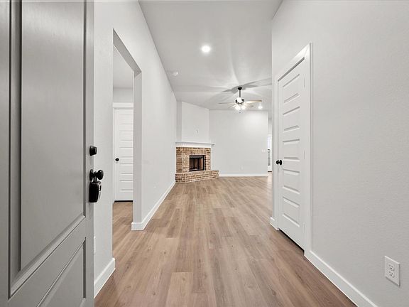Buy NOW and get up to $12,000 FLEX CASH! ADDITIONAL $5K FLEX CASH if you close by May 31st!! This exquisite home features a beautiful exterior and a welcoming covered entryway. Inside, luxury vinyl plank flooring flows seamlessly through the open-concept kitchen, living, and dining areas. The kitchen boasts granite or quartz countertops, a spacious island with bar seating, stainless steel appliances, and an enclosed pantry. The cozy living room is highlighted by a corner brick fireplace, adding charm to the space. The secluded master suite is a true retreat, offering a walk-in closet, drop-in tub, and walk-in shower. Enjoy outdoor relaxation on the covered back patio. Premium plumbing and lighting fixtures add the finishing touches to this thoughtfully designed home.