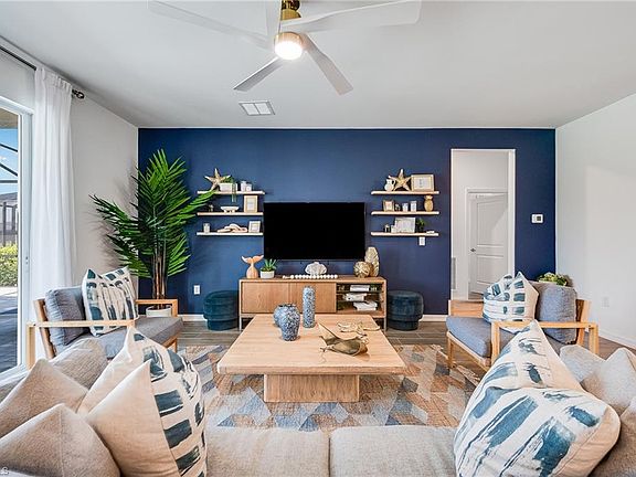 Welcome to 2318 Avocado Ln, Naples, in The Groves at Orange Blossom! Stunning never-lived-in former model home, fully furnished and professionally designed by City Furniture. This two-story residence offers 4 bedrooms, 3 baths, and a 2-car garage with 2,529 sq. ft. under air and pool & Spa. The first floor features a modern open layout with a kitchen, breakfast nook, and great room opening to a covered lanai with south exposure and a private pool and spa. A formal dining room and a secondary bedroom on the first floor are perfect for guests or a home office. Upstairs includes the spacious owner’s suite with an en-suite bath, two additional bedrooms, and a versatile bonus room. Located in the gated Groves at Orange Blossom Ranch, residents enjoy resort-style amenities including two community pools and spas, a fitness center, tennis, pickleball, basketball, and volleyball courts, a fishing pier, and multiple playgrounds. Prime Naples location near top-rated schools, shopping, dining, and Gulf Coast beaches. Move-in ready and available for immediate occupancy.