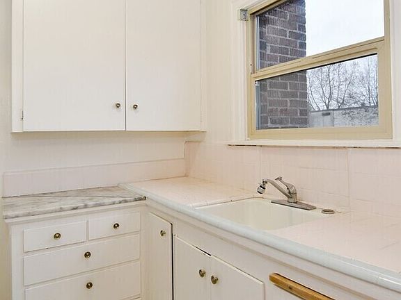 Private parking lotWhite kitchen cabinetryCoat closetVintage red brick buildingCard operated laundry facilityElectric heatVintage light fixtures