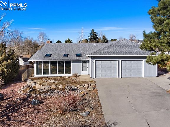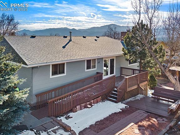 Nestled on a sprawling 10,018 sq. ft. lot with breathtaking views of Pikes Peak and the Front Range, this well-maintained home offers a rare combination of space, convenience, and natural beauty. The freshly painted exterior, newly stained decks, and mature pine and blue spruce trees create a welcoming curb appeal, while the landscaped, low-maintenance yard showcases native plants and a fully fenced backyard. Enjoy sunrise views from the front sunroom or relax on one of two expansive back decks, both offering stunning mountain vistas and equipped with a handicap-accessible ramp. The southern-facing driveway ensures easy winter maintenance, while the Class 4 roof provides durability and peace of mind. Inside, this home is designed for comfort and functionality with sought-after main-level living. Oak hardwood floors and natural light fill the space, highlighting the open flow between the living areas. The kitchen features granite countertops and overlooks the cozy living room with a gas fireplace. The primary suite includes a spacious walk-in closet and an attached five-piece bath. Two additional bedrooms, main-level laundry, and an oversized garage add to the home’s practicality. The garden-level basement offers incredible versatility with a second laundry hookup, a large secondary living space, and a wood-burning fireplace for cozy winter nights. Located in the highly rated D20 school district, just minutes from John Venezia and Cottonwood Creek Parks, Chapel Hills Mall, and major shopping centers, this home offers the perfect blend of privacy and accessibility. With easy access to I-25, you’re never far from the best of Colorado Springs. Don’t miss this exceptional opportunity—schedule your showing today!