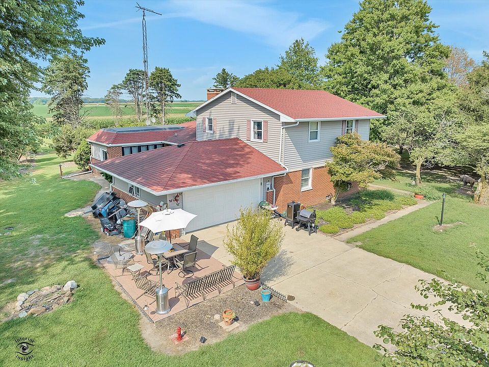 Nestled on 4.7 expansive acres, this meticulously maintained tri-level country home presents a remarkable opportunity for a fulfilling lifestyle. Boasting 5 bedrooms and 2 bathrooms, the residence offers ample space for family and entertaining. Step into a large living room or unwind in the separate recreation room. The heart of the home is a spacious eat-in kitchen, complete with a double fireplace shared with the living room. A unique bonus room with soaring, wood-lined ceilings adds character and functionality. Enjoy evenings by the basement fireplace, adding to the home's cozy charm. The outdoor sanctuary beckons with serene vistas and mature trees, 12x12 brick paved patio, providing a picturesque backdrop. A substantial 40x24 pole building offers endless possibilities, whether for storage, workshop space, or other endeavors. This property is well-suited for a hobby farm, allowing up to four horses and other small farm animals, or could serve as an ideal location for a home-based business, or simply a peaceful respite from the demands of everyday life. Modern updates, including a newer well, water heater, water softener, durable 50-year roof shingles, and central air, ensure effortless living. Stay comfortable year-round with a whole-house fan for cooling and a dual-fuel (propane/wood) furnace for efficient heating. This idyllic rural setting provides a perfect balance of tranquility and convenience, being close to shopping, schools, and restaurants.