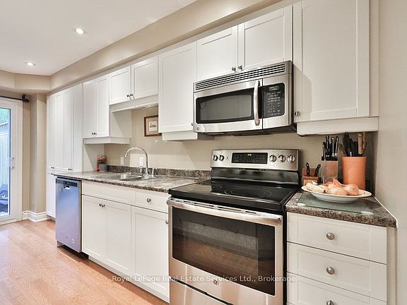 Great 3 bedroom townhouse tucked away quietly in the heart of Bronte Village and ideally located in the complex with no highrises directly behind and even offering lake views at some times of the year. Great opportunity to enjoy the relaxing pedestrian life walking to the lake, shops, restaurants and nearby marina. Interior features include hardwood flooring, crown molding, wood burning fireplace, updated kitchen and a spacious primary bedroom retreat with double door entry, walk-in closet and a 4-piece ensuite. The lower level has been finished also with a rec room or possibly 4th bedroom and a 3-piece bathroom. Front driveway can accommodate 2 cars and the back garden is private and fully fenced with a great South East facing deck.