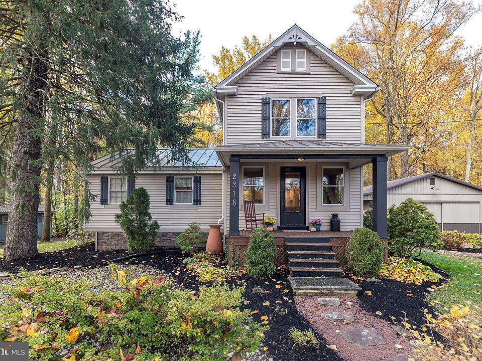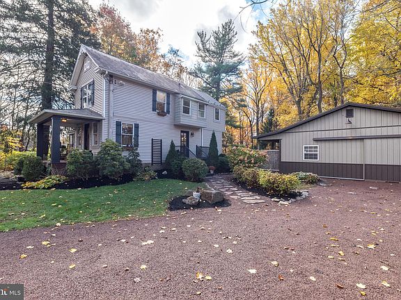 If you're looking for a home that is "farmhouse chic" on an amazing lot, this is the property for you! As soon as you step inside you will see the pride in ownership - every detail is just perfect! Curb appeal could not be better - right down to the adorable window boxes! The first floor boasts hardwood flooring, exposed beams and an abundance of windows allowing tons of natural light. The beautiful kitchen offers stainless steel appliances, updated counters, subway tile backsplash, large island with seating and storage, and a sliding glass door leading to a new deck with aluminum railings and privacy fence. Also on the main floor is the primary bedroom with vaulted ceiling, large walk-in closet, beautiful updated bathroom with oversized shower stall, computer nook, sliding glass door that leads to the deck. The second floor features two large bedrooms, again with lots of natural light, ample closet space and a large hall bath with sliding barn door. Full basement with laundry and lots of storage space. New furnace and tankless water heater installed in 2020. And for the cherry on top . . . there is a 800 square foot pole barn with a gas (propane) fireplace, recessed lighting, work bench, and cabinets - the possibilities for this barn are endless. This one acre property is a nature lover's paradise with it's beautiful landscaping and mature trees. There are two sheds (one with electricity) along with an old outhouse (used as a garden shed). You will also find a cozy fire pit, along with horseshoe pits. If you love the outdoors, this is the home for you - located only 10 minutes from Lake Nockamixon. Also close to shopping, schools, and major highways. I promise you, you will NOT be disappointed in this home!