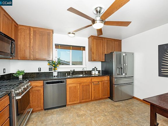 Charming home located in Mountain View Homes subdivision at 2318 Riverview Dr in Concord. This single-story, 4 bedrooms, 2 baths, with a generous 1,379 sq ft floor plan, provides a comfortable and inviting atmosphere for all. The spacious living areas are flooded with natural light, creating a warm and welcoming ambiance throughout. Step into the updated kitchen with newer appliances, making cooking and entertaining a breeze. The updated baths offer a luxurious retreat for relaxation. The living room offers a brick fireplace, shelving, ceiling fan and slider leading you to the backyard. Outside, you'll find a sprawling 12,600 sq ft lot, providing plenty of space for outdoor activities and entertaining. The big yard is complemented by a Tuff shed, offering additional storage for all your needs. Enjoy breathtaking views and soak up the sun on the back deck, perfect for hosting gatherings or simply unwinding after a long day. Freshly painted walls add a touch of elegance and sophistication to every room, creating a blank canvas for you to personalize and make your own. Over $120,000 in seller upgrades since 2002. Located near BART, freeway access, shopping, parks, restaurants, Todos Santos Plaza and movie theater. Welcome home!