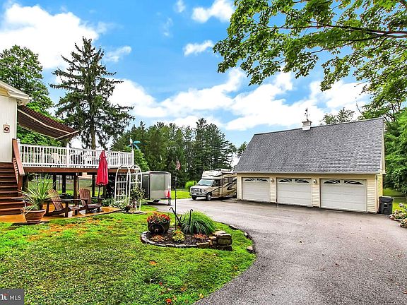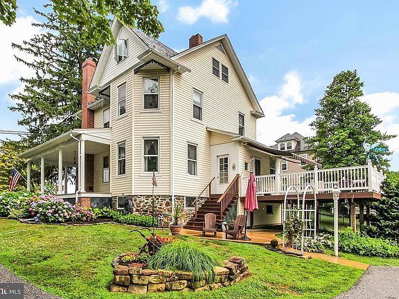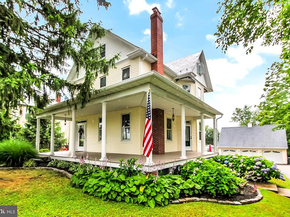 Beautiful Victorian with wrap around porch and perfect for family fun and entertaining . Lovely foyer with all the stunning woodwork and staircase you would expect in this lovely home * Pocket doors between the foyer and dining room leading to the living room * Spacious dining room with bay window * Updated maple kitchen with granite countertops and back stairs to upper level * Main floor bath with a claw tub * Most ceilings are over 9 ft high and transom windows over some of the doors * Adorable mud room that leads to the side yard and to custom vinyl and composite deck with retractable awning * Second floor offers two spacious bedrooms and very large walk in hall closet * Additional bedroom / study with custom built in * Sun filled hall bath - very spacious * Third floor is completely finished with recessed lighting, surround sound, and storage access . This is a perfect bedroom for the a teenager or game room / family area - must see to believe ( 29 x 18 ) sunny and bright. What a beautiful home and setting !!! The unfinished basement offers a pellet stove , laundry area , and rear entrance to the back yard * Water conditioning system * For the car buff or handyman - an oversized three car garage with stairs to a loft ( 22 x 22 ) The garage is heated with car lift and shelving * Scenic views from the deck and rear yard overlooking farmland * Hardscape and stunning flowers and beds * Many updates and expansive wrap around porch offers composite flooring and vinyl posts - maintenance free . Quality and beautifully maintained. New well and new septic system * Minutes to Rocks State Park , shopping, and schools. Zoned VR It's a beauty .