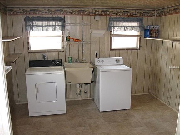 Great Florida living in friendly adult 55+ community. Centrally located in the heart of Harris Chain of Lakes, with its seemingly endless miles of boating, fishing, sightseeing & exploring. Minutes to downtown Tavares (Americas Seaplane City) & Historic Mount Dora. Approx. 50 min drive to Disney World or Orlando International Airport and approx. 35 mins going north to The Villages. 2 bedroom 2 bath, open dining(w/built-in breakfront) /living room expands to 18âx12â family room. Spacious 12âx12â laundry room off kitchen. Separate 9âx7â workshop/storage room with workbench & electric. Screened porch with sliding door off carport which also offers access from rear door thru screened breezeway. Oversized 1 car carport w/extra covered parking space for golf cart. Roofover, well & pump for irrigation, newer air conditioner, shovel shed.