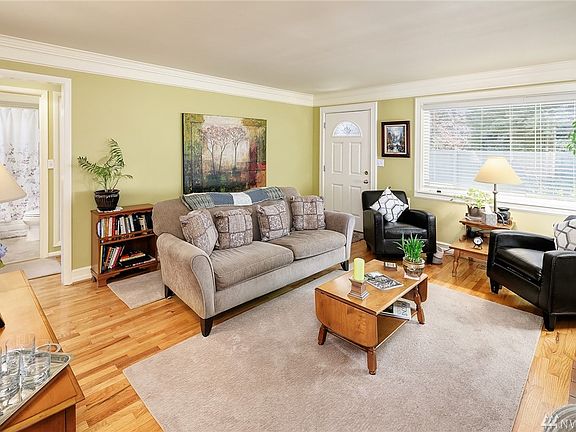 Charming mid-century brick townhome (1 of just 2), perched hillside w/ territorial views! Truly a rare find! A smart two-level floor plan affords spacious bedrooms, rich hardwoods, fireplace, and bright eat-in (view) kitchen with stainless appliances, & custom cabinets. Plush downstairs... media/lounge/guest/home-office, full-bath, laundry, storage - separate entrance off of a private patio. Attached garage + 2 off-street parking. Central A/C throughout. Easy commutes to SLU, Expedia.