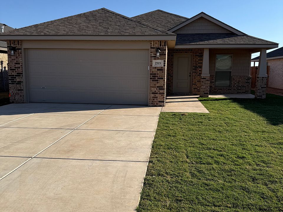 Be ready to call this BRAND-NEW, modern 1,450-square-foot, home! The eye-catching exterior greets you with a cozy front porch, classic craftsman-style columns, and stylish brick accents. Inside, you'll enjoy a bright, open-concept layout with 3 spacious bedrooms and 2 modern bathrooms. A well-equipped kitchen with a central island awaits your next culinary adventure, and yes a fridge is provided! Additional highlights include a generous master walk-in closet, a convenient two-car garage, and front and back yards with a covered patio, perfect for unwinding outdoors and entertaining guests!