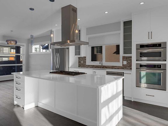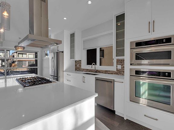 Welcome to Richmond/Knob Hill! This beautifully finished home offers 4 bedrooms, 3.5 bathrooms, a thoughtful layout, and a fully developed basement—truly a standout property. The bright, open-concept main floor features 9-foot ceilings, hardwood floors, and oversized windows that fill the space with natural light. The tiled front entry includes a spacious closet with French doors and custom organizers (no wire shelving in this house!), leading into a generous living room perfect for entertaining or settling in for a movie night. The chef-inspired kitchen boasts quartz countertops, a large island, ceiling-height cabinetry, a gas cooktop, built-in wall oven and microwave, and a pantry with custom shelving. It flows seamlessly into the dining area, which comfortably seats eight and is anchored by a gas fireplace with built-ins and a south-facing window. A discreetly positioned 2-piece powder room and a mud room with French door closet and additional built-ins complete the main level. Upstairs, an extra-wide staircase and skylight create an inviting transition to the second floor, where you'll find 9-foot ceilings and an ideal layout. The private primary suite overlooks the backyard and includes a spacious 5-piece ensuite with dual vanities, a deep soaker tub, an oversized shower, and a dreamy walk-in closet with extensive built-ins. Two additional large bedrooms sit at the opposite end of the home, each with built-in closets, large windows, and a shared balcony complete with soffit lighting. A 4-piece bathroom with quartz countertop and a dedicated laundry room with soft-close cabinetry complete this level. The basement feels anything but below-grade, thanks to large windows and cozy in-floor heat. The rec room offers a great space for family time and includes a well-appointed wet bar. A fourth bedroom with two windows and a huge walk-in closet sits next to a full 4-piece bathroom. Additional highlights include a linen closet, ample storage, and an exceptionally tidy utility room. Outside, the sunny south facing backyard features a lovely deck and leads to a detached double garage (insulated and drywalled). *BONUS - central vac rough-in, sump pump, freshly painted, professionally cleaned and move-in ready!